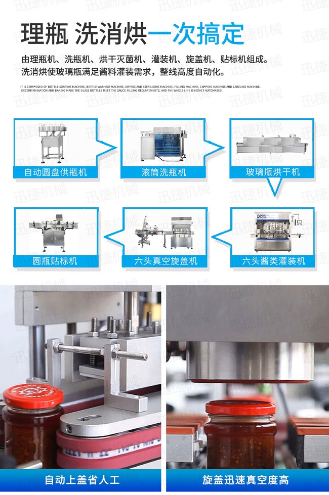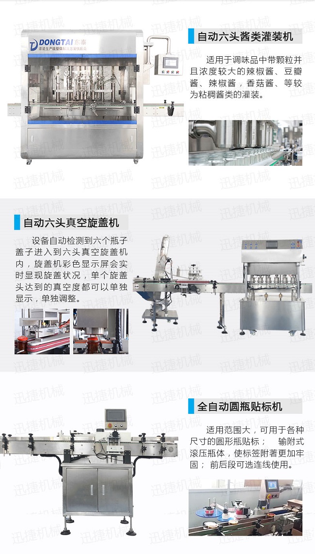 自动化酱料灌装旋盖贴标生产线优势: