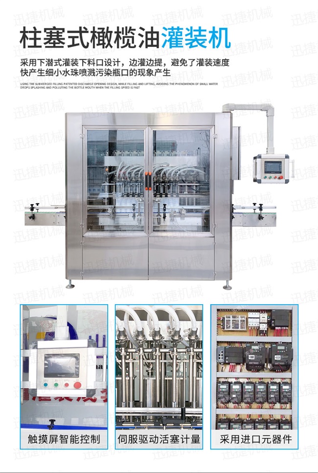 1.真空回吸系统保证灌装过程中无滴漏现象,不会污染输送链板和瓶体。灌装头和气缸采用分体式机构,可单独拆卸,不会出现液体渗漏损坏气缸的情况。进口亚德客气缸经久耐用,其他密封等配件使用标准件,更换维护简单方便。