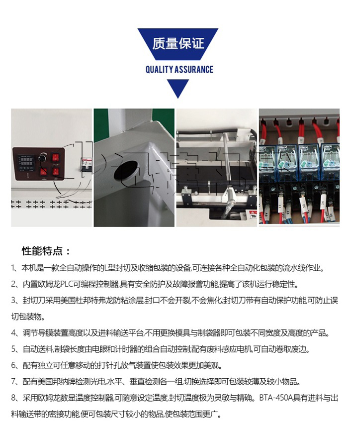 全自动套膜收缩机是由全自动450L封切机和热收缩机组成,入袋、切断、热封、热收缩一条线自动完成,还可以与进料生产线连接,实现无人操作。提高效率,带来利益。全自动化封切收割,适用于各种物品的套膜及收缩,生产效率高。
