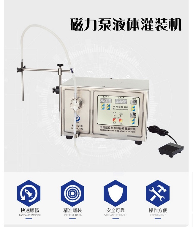 除此之外,液体灌装机的上压块可以与泵头本体分离,装卡软管方便,根据用户需要,可串接多个泵头,外形美观、考究,结构紧凑、流量宽泛。方便OEM方式配套应用。具有定时功能,可实现半自动分配、灌装具有半电流锁定功能。这样的灌装机满足很多生产需要,现在以及未来迅捷机械还会研发出更多的灌装机设备,让我们来期待吧!
