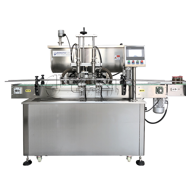 3、  该设备在设计上大大缩短了下料斗到灌装头的灌装距离,克服了含油量大的物料(如:含芝麻粒的辣椒油)在灌装过程中出现的有些瓶油多,有些瓶酱多的灌装误差大的缺点。