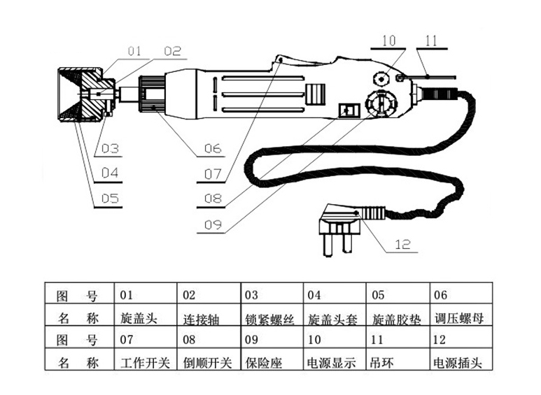 整机包括:主机、铝制旋盖卡头及缓冲内塞。
